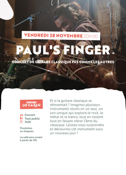 Vendredi 28 novembre le café Lo Cazau vous propose un nouveau concert : Paul’s Finger.