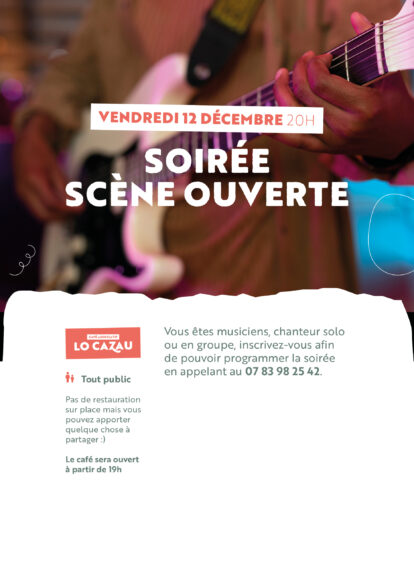 Vendredi 12 décembre le café Lo Cazau vous propose une soirée Scène Ouverte.